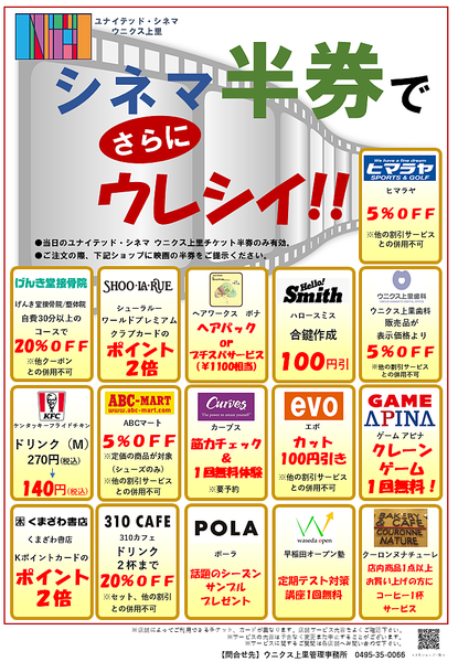 ※当日のユナイテッド・シネマ ウニクス上里チケット半券のみ