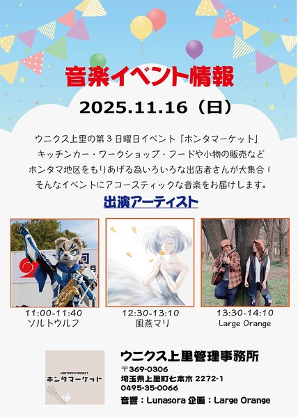 11/16(日) ♬ホンタマーケット音楽ステージ♬