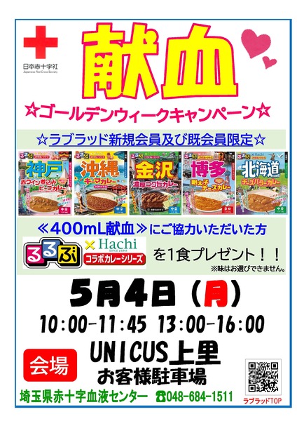 問合せ先:埼玉県赤十字血液センター 048-684-1511