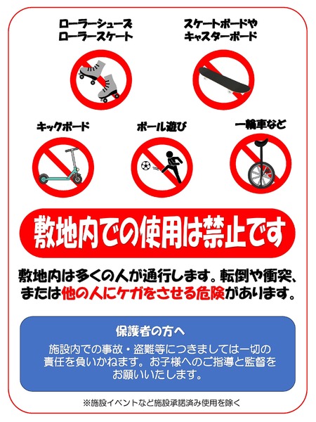 ・ペット事故、トラブル、器物破損、傷害等に関して当施設は一切責任を負いません。